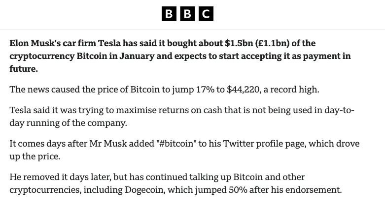 特斯拉的比特幣操作:市場風向標