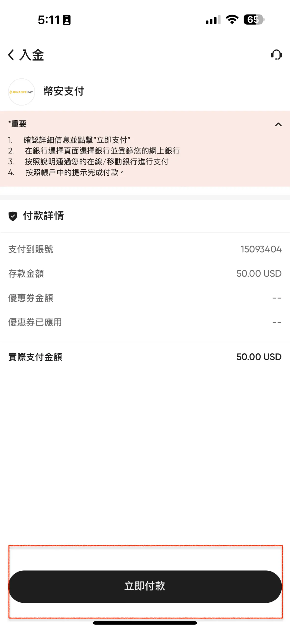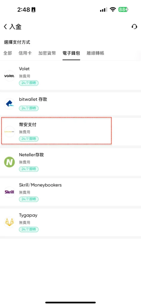 - 選擇電子錢包:流程與前述方式類似,在支付方式中選擇您要使用的電子錢包 (例如:幣安支付)。