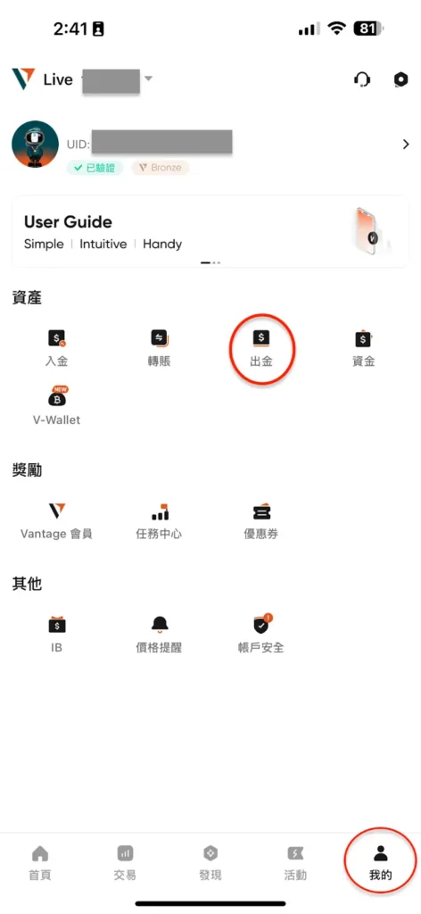 - 選擇出金功能:登入客戶中心或 APP,在「我的」頁面的資產分類中選擇「出金」。