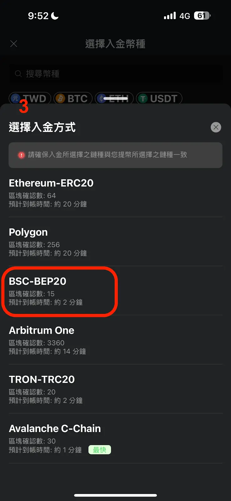 - 再次確認加密貨幣網路:轉帳前多花 10 秒鐘確認鏈類型,可以避免資產永久遺失的風險。
