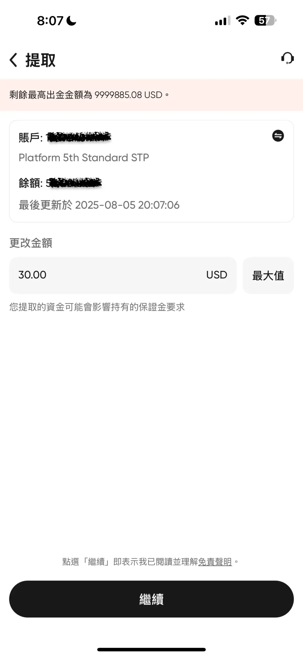 - 填寫提款金額 (出金至少 $30 USD) 與相關資訊。