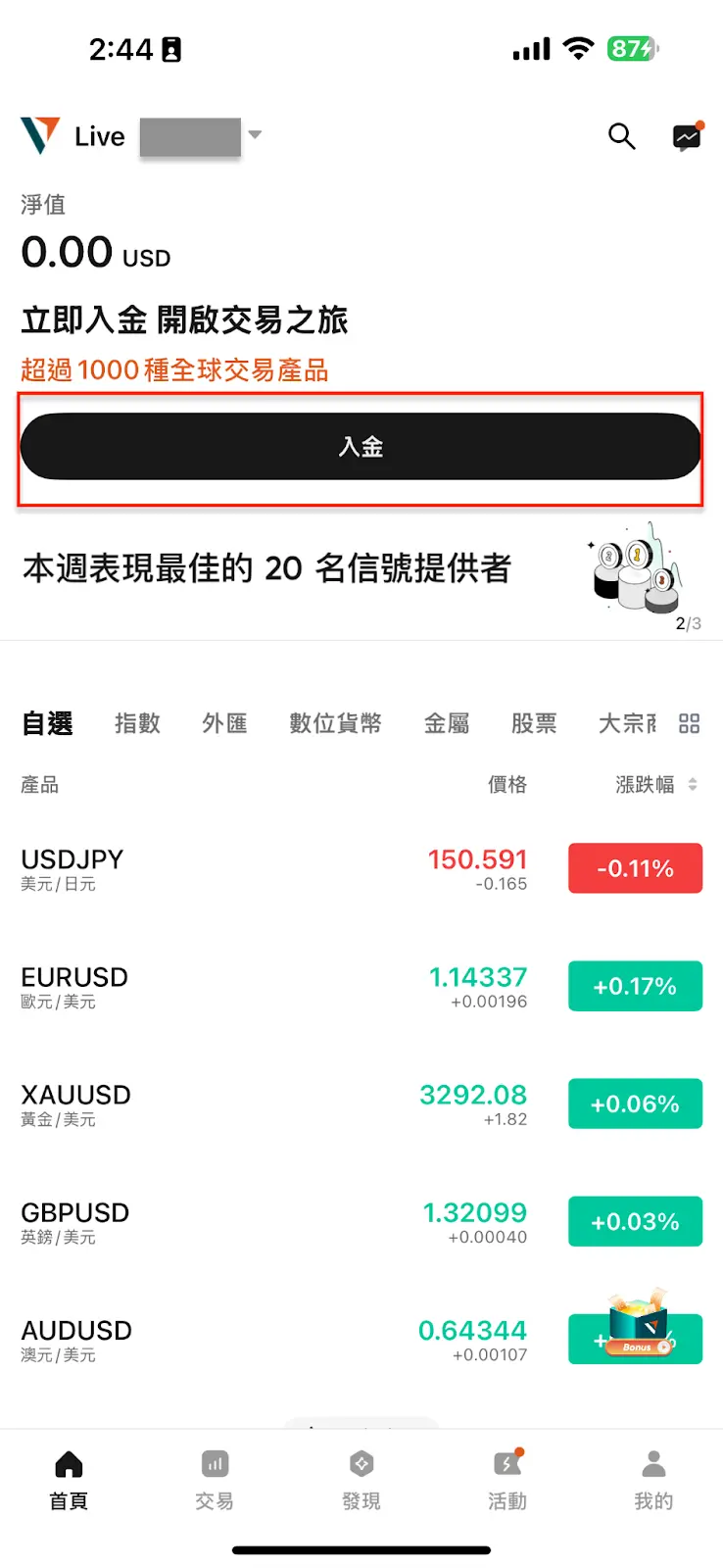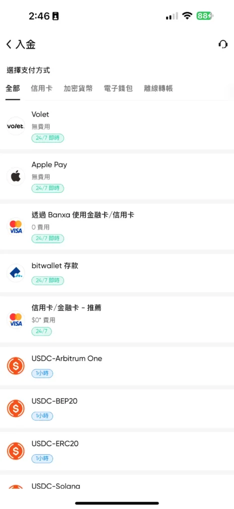針對台灣市場,目前最主流、最方便的選擇是信用卡 (Visa, MasterCard) 和加密貨幣入金。若您是交易新手首次入金,建議使用信用卡,因為它處理速度最快、操作流程最簡單,能幫助您快速熟悉系統。