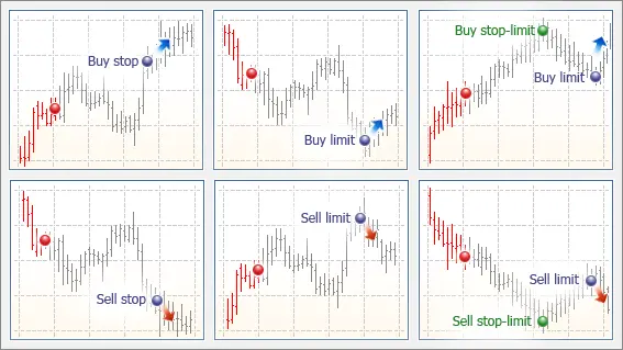 MT5提供了完整的交易執行解決方案,支援六種不同的掛單類型:Buy Stop(買入停損)、Sell Stop(賣出停損)、Buy Limit(買入限價)、Sell Limit(賣出限價)、Buy Stop Limit(買入停損限價單)、Sell Stop Limit(賣出停損限價單)。每種訂單類型都有其特定的使用場景,讓交易者能夠根據市場狀況和交易策略選擇最適當的執行方式。