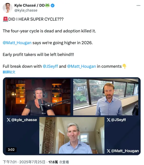 反對者認為,儘管減半機制依舊存在,但其在當前市場中的相對影響力已大幅減弱。因為市場結構已經發生根本性的轉變。這派觀點的主要支持者包括Bitwise投資總監Matt Hougan、CryptoQuant創始人Ki Young Ju(音譯:紀永柱)以及研究機構K33 Research等。