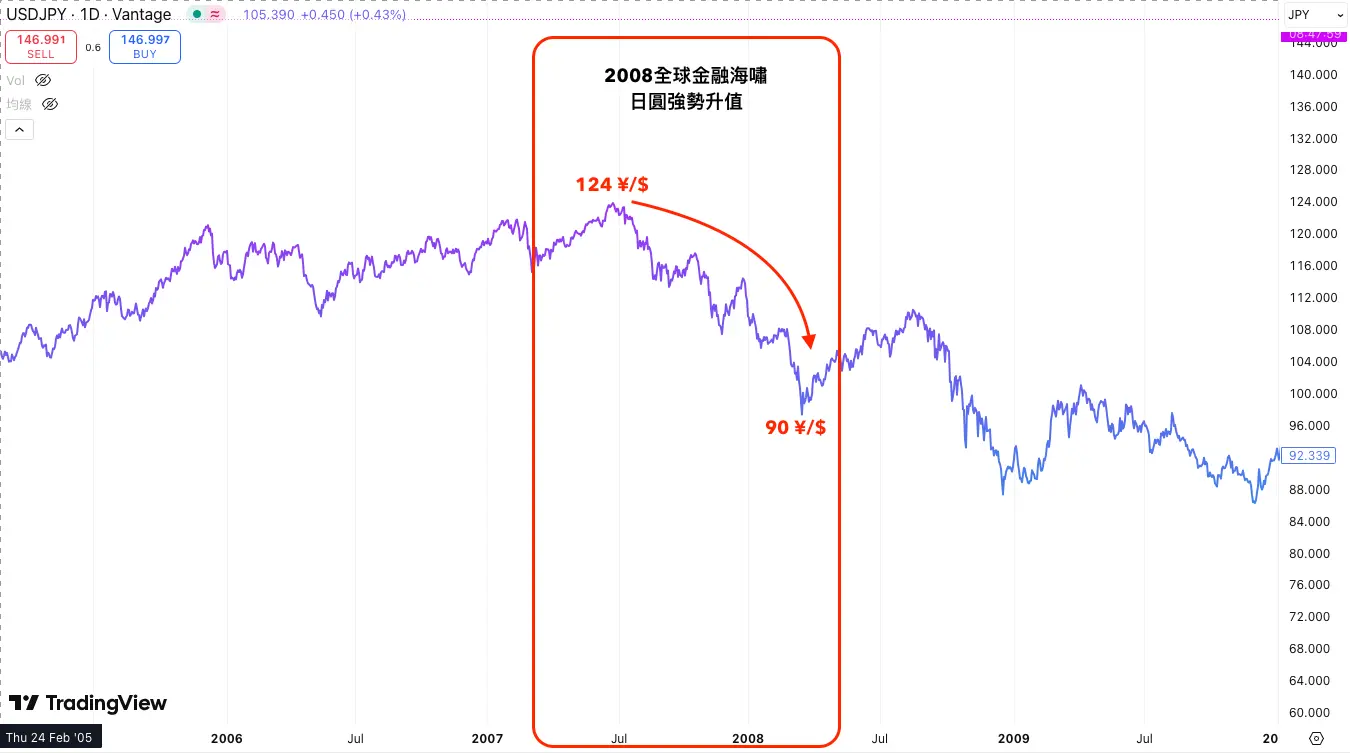 案例一:日幣避險模式 — 2008 全球金融海嘯