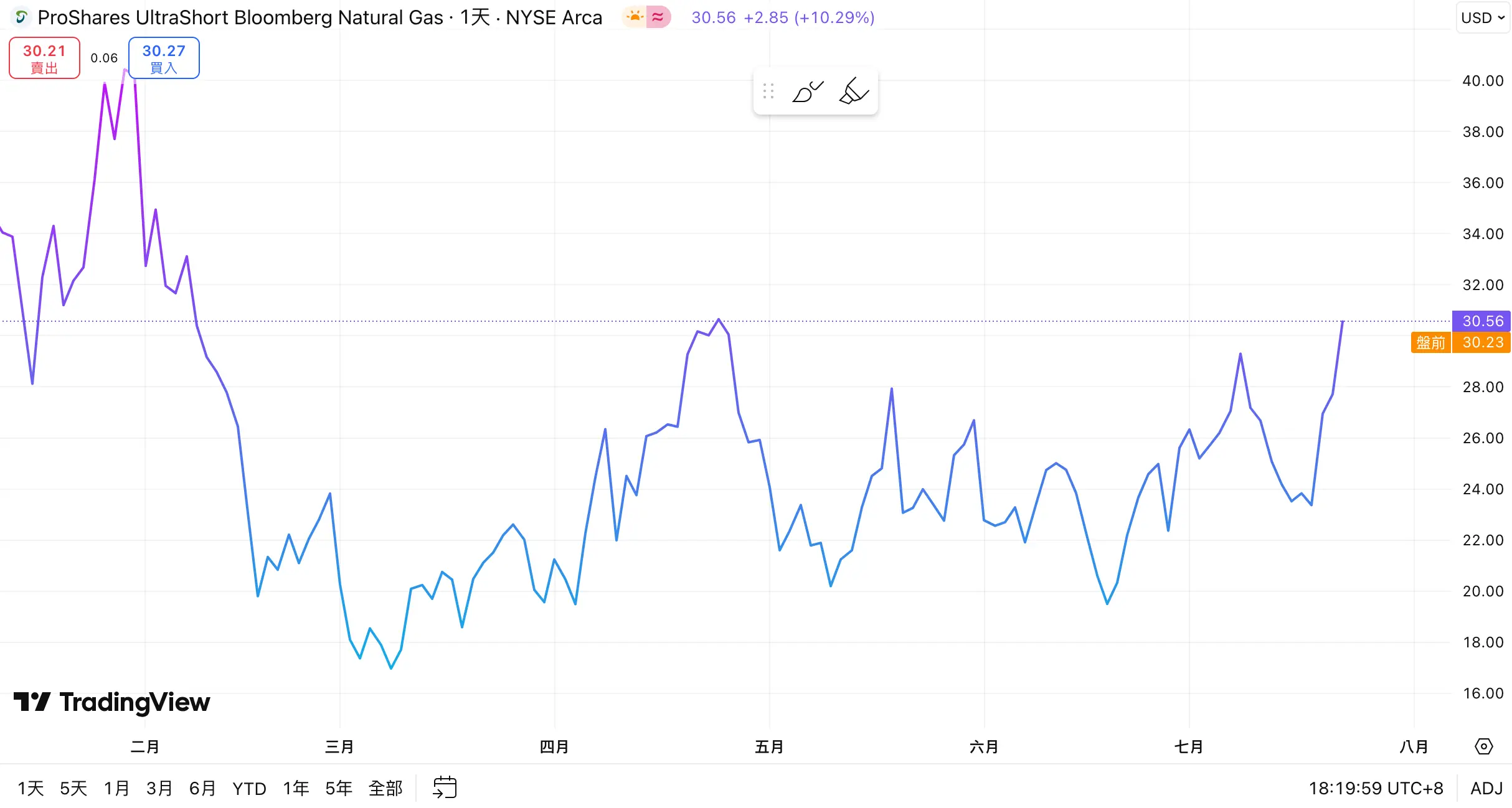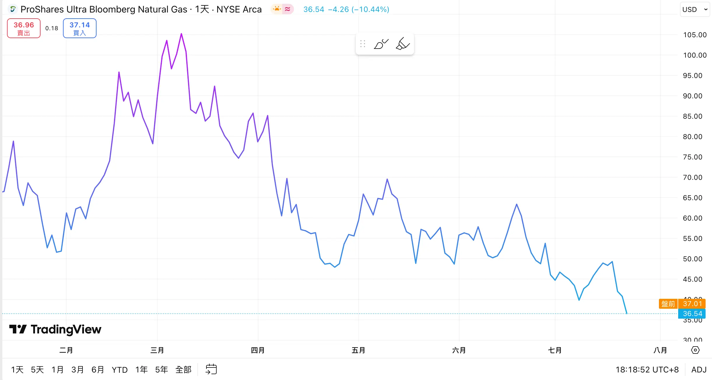 - UNG(United States天然氣ETF):追蹤近月天然氣期貨價格